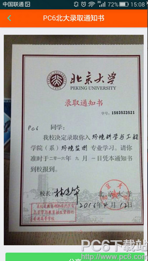 第四步:制作成功,把你的北大录取通知书分享到你微信朋友圈吧!