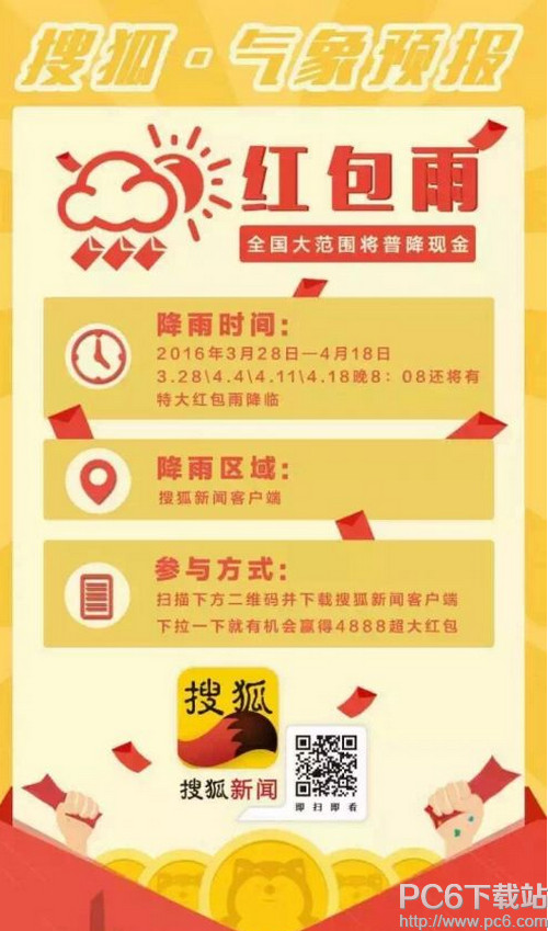 搜狐新闻红包全攻略 1、自3月28日起,每天在搜狐新闻客户端首页下拉看新闻,即有机会抢到现金红包,红包可直接提现到支付宝。 2、每周一晚8:08,更有机会获得¥4888、 ¥888、 ¥128超大现金红包,红包雨来袭,数量有限,先到先得,快来抢! 3、如果幸运抢到¥4888或¥888超大现金红包,请及时截屏,提现的时候会用到哦! 4、要先升级到最新版搜狐新闻客户端才能抢红包哦! 苹果应用引领新的上网速度革命,给您带来超快体验。 |