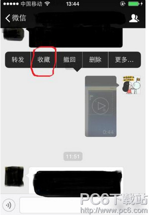 发送成功之后,长按视频,知道出现图片上所示的选项栏。选择“收藏”。