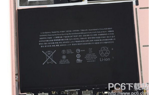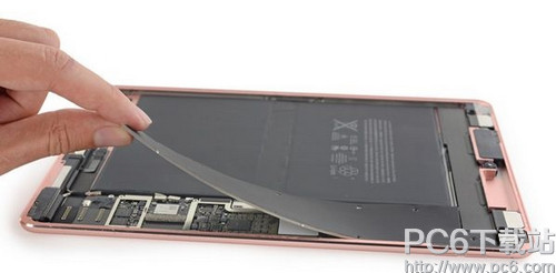 11、电池部分。这款 iPad Pro 中的电池和 12.9 英寸中的不一样,苹果使用了很多胶水,要取下来还真是非常棘手。9.7 英寸iPad Pro电池的规格:3.82 V、27.91 Wh、7,306 mAh,据苹果介绍它可以提供 10 小时续航。12.9 英寸 iPad Pro 的为 38.8 Whr,iPad Air 2的为27.62 Whr,不过他们的续航都没有区别。