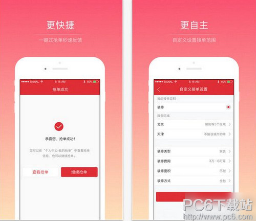 开放的城市有:北京、上海、广州、深圳、成都、天津、沈阳、哈尔滨、长春、大连、石家庄、济南、太原、青岛、武汉、郑州、长沙、苏州、无锡、南京、南宁、福州、东莞、厦门、合肥、杭州、重庆。 以上城市及行业都满足的商家,现在就注册58抢单神器来抢单吧,机会要靠自己争取! ps:以上就是pc6小编整理报道,更多信息请扫描屏幕下方二维码。 苹果应用引领新的上网速度革命,给您带来超快体验。 |