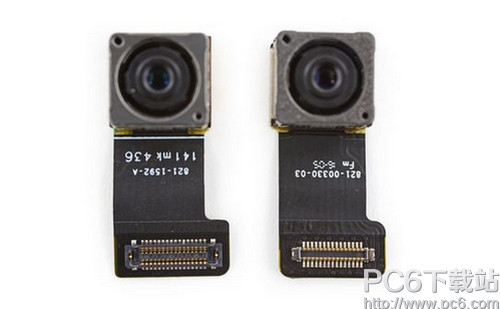 6.拆除摄像头。虽然iPhone SE(右)的和 5s(左)的非常相似,但是 SE 的连接器上的针数较少。SE 的 iSight 摄像头增加到 1200 万像素,但是像素间距从 5s 的 1.5?m 减少到 1.22?m。