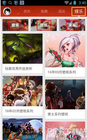 4.海量壁纸周边一样不差!喜欢那些乱七八糟的壁纸,呃,不对不对,小编知道怎么形容这个了,就是喜欢游戏相关的壁纸作品什么的,就直接打开【娱乐】,【图集】、【壁纸】、【漫画】随便你挑花眼,电脑和手机都可以下载哦,做游戏迷也没什么不好,至少是个爱好,至少有迈向大神之路的梦想是吧!