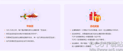 活动时间:3月31日至4月6日 玩法规则: step1手机丢雷扔炸弹,一击两千使劲干 step2初始血量一万点,零血量出局真危险 step3获赠血瓶回五血,补锌补钙又补铁 step4武林至尊饮血剑,砍人回血真方便