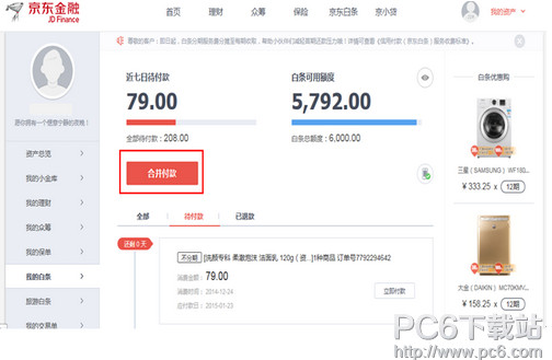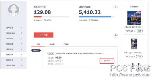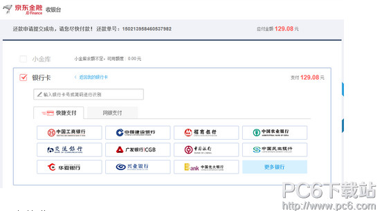 4.点击“立即付款”按钮后,页面跳转到金融收银台,选择银行卡相关信息,即可完成白条还款操作。