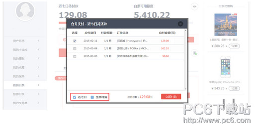 3.在下面页面,你可以选择全部订单或者部分订单进行付款