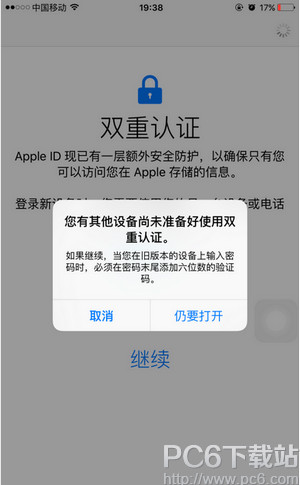 4.出现这个提示不要慌张,因为你当前的Apple ID 还登陆过其他设备(不是IOS9系统的)直接点击仍要打开