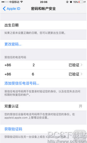 8.输入完以后就可以开启双重认证了,这里重点提一下,一定要在受信任的电话号码,多添加几个号码(选你最信任可靠人的手机号码)一但你手机丢失了(即使你补卡也需要时间),添加过备用手机号就可以马上登陆Apple ID 修改密码,使用备用的手机号接收认证的验证码,进行操作,所以千万不要只添加你当前的手机号,切记这一点。为了安全一定要多添加几个手机号码(具体能最多添加多少号码,自己尝试看看吧)