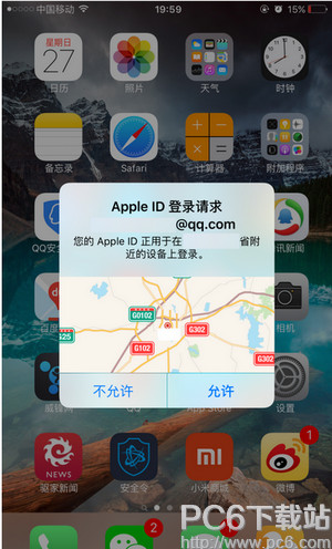 18.手机也是多了新的提示当前账号的登录请求,如果不是你当前自己登陆的账号,要马上注意,及时点击不允许,并且修改密码(仍然是显示的位置不对啊,又跑到省内其他城市了)这个提示和之前登录Apple ID网站一样都有这样的提示。