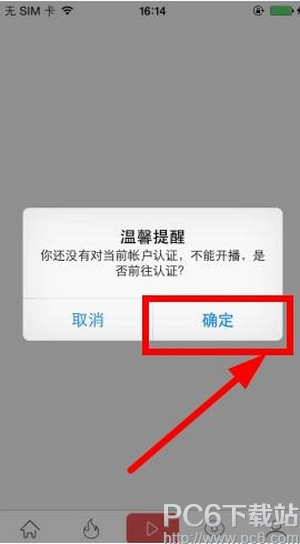 2、如果你没有认证当前账户的话是不能开播的哦,点击确定认证账户!