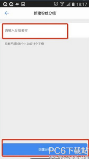 3、然后输入分组名称,点击下方的“创建分组”