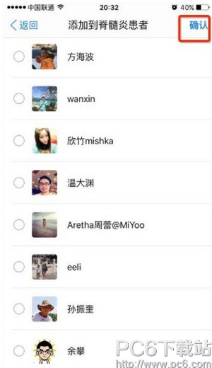 4、选择要加入该分组的粉丝,点击右上角的“确认”