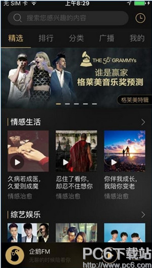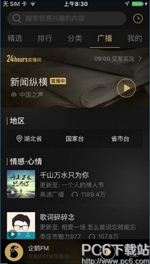4、进入到广播页面可以收看各种类型的广播,同时还可以分享情感及心情等信息。