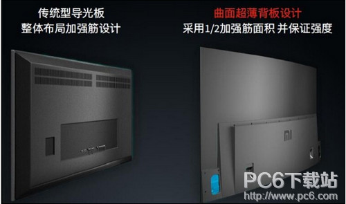 除去曲面这个小米电视3S 65曲面的最大特性,这款小米次旗舰电视还有一个特点,薄,这是因为更加纤薄的玻璃面板以及背板一体化设计(机身后部金属部分与液晶面板是一体模组,半个机身的塑料部分才是其真正的后壳)所做出的结构创新。 最终,小米电视3S 65英寸机身最薄处只有5.9mm。如果你对这个数字没概念,请参考喜闻乐见的iPhone6s,其机身厚度是7.1mm,也就是说65英寸的大屏电视比追求极限轻薄的4.7寸手机还薄。