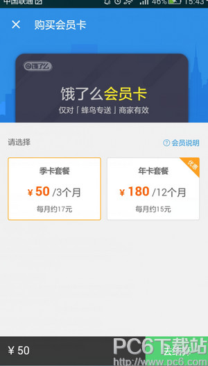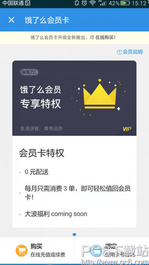 2.进入饿了么会员卡,你会看到购买的选项