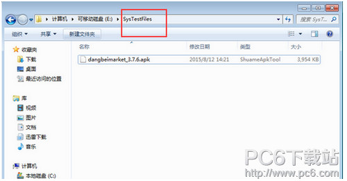 在U盘中新建一个名为“SysTestFiles”的文件夹,将当贝市场拷入