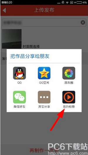 2、然后选择吧作品分享到“我的相册”,如下图: