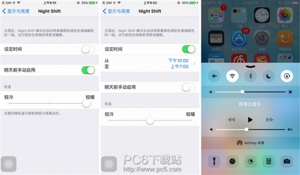更新好之后第一次开机即为添加Apple Pay界面。 Night Shift模式