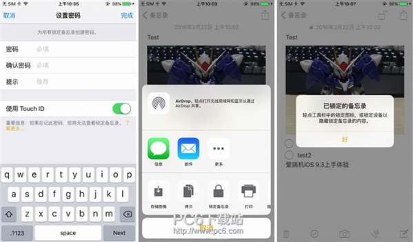 在【设置-备忘录】中我们可以选择指纹或密码加密。虽然提供了备忘录加密功能,但隐藏的稍微有些深,点击右上角的分享菜单我们才能看到【锁定备忘录】这一选项,在编辑完成后点击右上的锁匙标志即可完成加密。