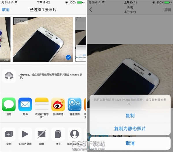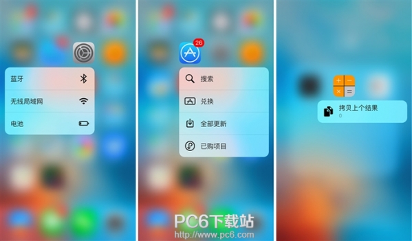 iOS 9.3中有更多的原生应用加入了3D Touch功能,除健康外,设置、AppStore、计算器都加入了3D Touch,比如设置可以快速进入电池、WiFi设置,计算器加入了拷贝上个结果,还算蛮实用。 Live Photo复制静态照片