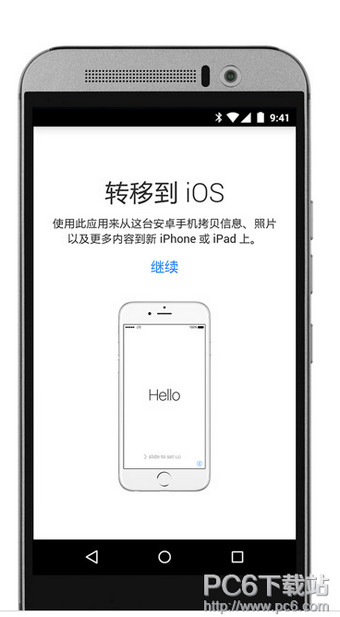 导读想和朋友分享您喜欢的苹果应用? 我想发上微博该是个不错的主意, 更高效的应用平台:App Store浏览太麻烦? 没法找到高质量的应用? 下载苹果应用大全 省时!省力!!省心!搜索功能强大,搜索结果... 想和朋友分享您喜欢的苹果应用? 我想发上微博该是个不错的主意, 更高效的应用平台:App Store浏览太麻烦? 没法找到高质量的应用? 下载苹果应用大全 省时!省力!!省心!搜索功能强大,搜索结果优先列出限免软件和免费软件。 ios9.3从 Android 转到 iOS的办法?如何把信息从 Android 转到 iOS上来。很多朋友的手机可能已经从 Android 转到 iOS,那么朋友们就要问了ios9.3从 Android 转到 iOS的办法?如何把信息从 Android 转到 iOS上来。下面pc6小编就来教教你。 iPhone 的一切都是为了易于使用而设计,要从其他手机转换到 iPhone 也是一样。有了 "转移到 iOS" 这款 app,只需几步,你就可以自动、安全地从 Android 手机中转移你的内容。你也可以前往 Apple Store 零售店,我们会帮你将数据传输至你的新 iPhone,并帮你把一切设置妥当。无论哪种方式,都能轻松搞定。下面是可以转移的内容: