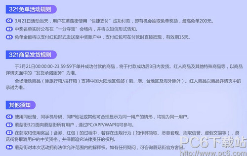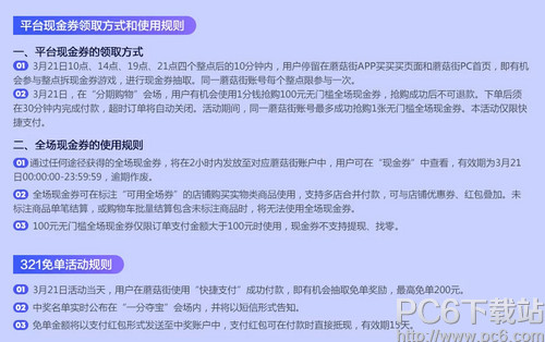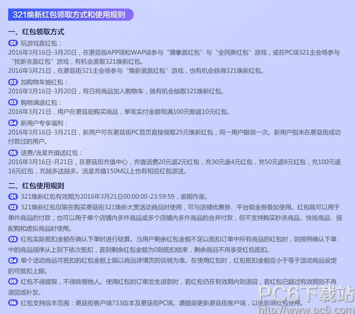 蘑菇街在3月21日举行焕新大赏活动,1亿元红包免费抢,30万新品6折起。快跟着小编看看怎么抢红包吧! 蘑菇街春季321狂欢节!30万春装全面上新,超低折扣装扮早春时尚! 1亿红包免费发!3.16-3.20每晚21点,还有神秘大咖携百万红包助阵!折后再用红包,超划算! 3.21,仅此一天,购物每满100元再返10元! 抢红包全攻略如下: