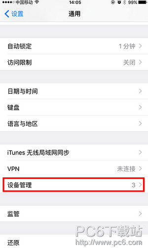 如果你的系统是 iOS 9.2 以上,进入 “设置>>>通用>>>设备管理”,找到刚才同名的描述文件。