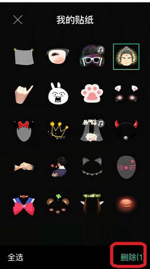 3、选择想要删除的贴纸,可选一个或多个,点击右下角“删除”,然后确定删除即可