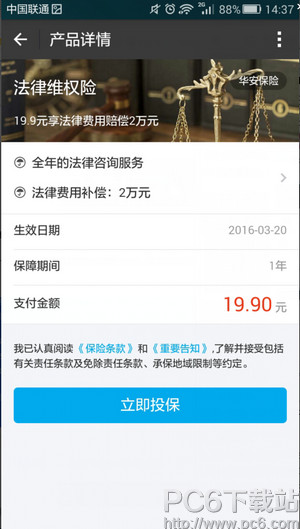 支付宝法律维权险详细介绍: 一、产品介绍: 保障在保险有效期间因碰瓷纠纷、医患纠纷、劳务纠纷、扶老人/孕妇/残疾人/儿童纠纷、假冒伪劣造成食品安全事故纠纷,而需要通过法律途径来解决的法律费用(诉讼费用、执行费用、司法鉴定费用、律师代理费用、法院文书邮寄送达费用),赔偿限额2万元,并赠送全年的法律电话咨询服务。 二、提供保障: 诉讼、仲裁、法律费用:2万元; 全年的法律电话咨询服务。 三、重要告知: 1、本产品投保人须为18周岁以上(含18周岁)完全民事行为能力人。 2、本产品同一被保险人限购1份,多投无效。 3、本产品投保成功后第三日零时生效。保险期限为一年。 4、理赔流程:您可拨打华安保险客服电话95556进行理赔咨询及报案。 5、名词解释: “碰瓷”纠纷:因非驾驶人驾车责任导致被保险人(驾驶人)遭遇“碰瓷”并发生纠纷。被保险人通过法律途径解决纠纷。 医患纠纷:因医疗机构及其医务人员的过失引发医疗事故,导致被保险人在接收医疗救治或整容过程中受到人身伤亡或财产损失,被保险人通过法律途径解决纠纷。 劳务纠纷:因非雇员责任与雇员发生劳务纠纷,如雇主拖欠或拒付被保险人应按雇佣合同获取的劳务所得等,被保险人通过法律途径解决纠纷。 扶老人/孕妇/残疾人/儿童纠纷:保障因老人、孕妇、残疾人、儿童摔伤撞伤等意外,被保险人提供帮助后导致被误认为是肇事者,被保险人通过法律途径来解决纠纷。 假冒伪劣造成的食品安全事故纠纷:指因食用在经营场所公开销售的假冒伪劣食品导致被保险人的人身伤亡,从而引起的被保险人与食品经销商或食品生产厂商的纠纷。 去年支付宝曾上线“扶老人险”曾引发社会关注,蚂蚁金服介绍,法律维权险的确可以算作是对“扶老人险”的升级换代,是希望在更多的场景中,为普通用户的维权提供保障,同时也希望借这样一款保险,增强用户的法律意识。 据悉,投保后,如果遇到纠纷,比如因搀扶帮助别人被讹,驾车过程中遇到有人碰瓷,或是因为老板拖欠薪水产生劳资纠纷,和医务人员发生医患纠纷,以及购买食用假冒伪劣食品造成人身伤害,都可以拨打华安保险电话95556进行理赔咨询并报案,华安保险将为其提供全年的法律咨询服务和最高2万元相关法律费用报销。 蚂蚁金服称,法律维权险的确可以算作是对扶老人险的升级换代,为普通用户的维权提供保障,也希望增强用户的法律意识。 除了法律维权险外,支付宝最近推出了一系列紧跟日常生活的保险,充电宝及手机爆炸、化妆品过敏、奶粉召回损失和食品安全险等。 苹果应用引领新的上网速度革命,给您带来超快体验。 |