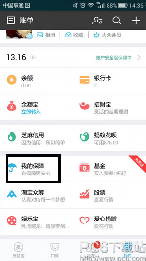 2.进入后找到我的保障