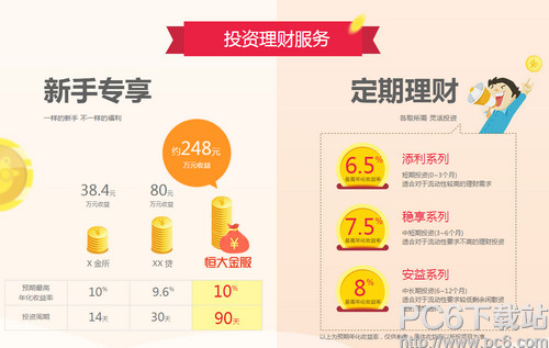 恒大金服(HDFAX.COM)是恒大集团旗下的互联网金融平台。投资资金全程接受银行监管,风险管理体系具有国际金融机构专业水准,预期年化收益同业突出。恒大金服致力于成为中国互联网金融平台的领军者! 恒大集团是以房地产为基础,金融、互联网为两翼的大型企业集团。总资产近7000亿元,2015年销售额2013亿元,纳税近200亿元,将跻身世界500强。 现在【恒大金服】注册即送1000元现金红包,投资100元即可抵扣20元现金。更有年化10%新人专享等你来投资。