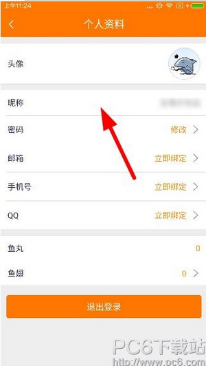 2、然后用户在点击“昵称”一栏的时候,返现并没有响应,这是因为斗鱼tv的昵称一经设定是不可以修改的,所以用户在注册的时候,就要把昵称想好,避免修改。