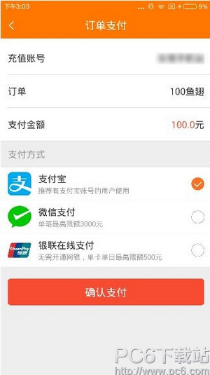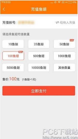 2、然后选择鱼翅充值数量,1鱼翅=1元,点击“立即支付”,如下图;