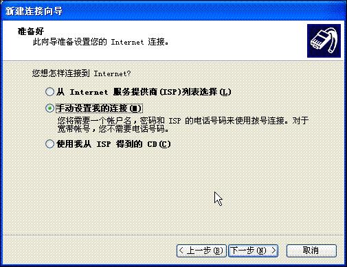 4、接着选择“手动设置我的连接”,再点击“下一步”;