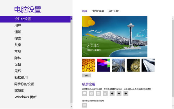 二是界面背景图片可以自由更换,这对于我这样一个总喜欢用新图片来替换系统默认壁纸,以达到愉悦眼球或个性目的的人来说也非常实用。因为只要愿意,我可以随时进入“电脑设置”界面,选择左侧的“个性化设置”项(图3),然后在右侧选择一张系统自带的图片做为锁屏背景,或者单击“浏览”按钮,直接使用本机中保存的图片做为背景图片。