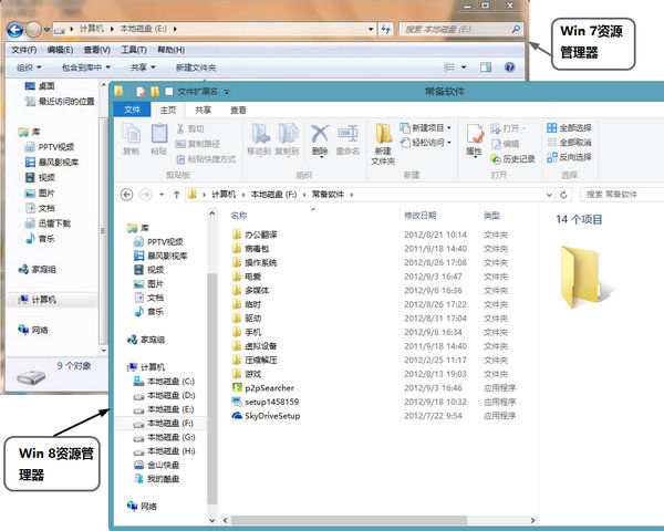 显然,Win 8资源管理器这些全新的特性,将有助于我更快捷、更方便地管理或查看其中的文件。而一旦明白了这一点,再使用Win 7或先前系统版本的资源管理器,就会觉得低效得多。