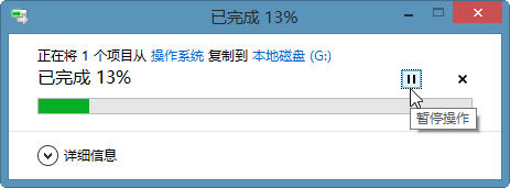 除此之外,Win 8还支持多个复制任务同时进行,不过,复制速度会有所下降,而且会占用大量的系统资源,所以除非我目前有事不再需要使用电脑,并想让电脑在这段时间内完成复制操作,否则我不会采用这种方式,我宁愿使用单文件复制的方法,逐一进行,以此来提高复制效率。