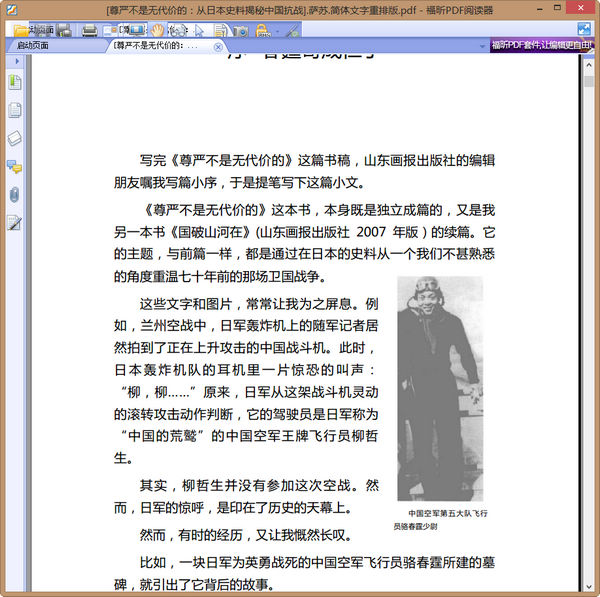 不过,最终我的系统中还是安装了福昕PDF阅读器(图26)。原因很简单,我不太喜欢系统内置的这个阅读器,这当中除了它功能简单,只提供了阅读功能,而未提供任何有助于我更方便阅读的其它功能(如注释、朗读和标签)外,还在于它是一款典型的Win 8风格的应用。这就意味着,我每次阅读PDF或XPS文档,都不得不被强行拖回到Win 8风格的界面中,由于Win 8风格的应用有全屏显示的特点(图27),而且无法自定义,所以,在阅读的时候,我根本无法同时进行其它工作,比如将阅读的内容复制到Word文档中,或在阅读的间隙,方便地和MM聊天等。