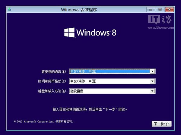 ▲当出现上图提示后,快速敲击任何按键 3、当出现Win8.1安装界面时,使用组合键Shift + F10打开命令窗口;