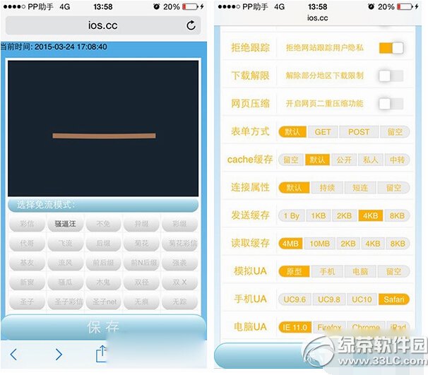 4、打开Safari,输入地址: ios.cc (这个是默认的联通免流后台)