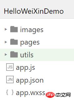 }3 .app.wxssapp.wxss文件比较好理解了,它相当于一个全局的样式表,等同于前端中的css文件,任何页面都可以使用这个样式表,当然,如果某个页面重复定义了某个属性的表现形式的话,则会覆盖app.wxss文件中定义的。 以上三个文件中,app.js和app.json是每个微信小程序必须要有的,app.wxss则根据需要来添加。 在图一的文件结构中,还有三个文件夹目录:images,pages,utils,这种形式就类似我们开发中分包的做法(其实就是)-将具有类型性质的文件或者类分目录存放,这样便于维护项目。 我们来关注下pages目录,这个目录存放了小程序的所有页面。