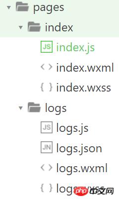 图2-小程序的页面结构 这里我们定义了两个页面,index(首页)和logs(显示某种日志)。 可以看到,在每个页面中,也有类似前边儿我们所说的app.js,app.json等文件,下面我们就来看看它们具体是什么。 以logs页面为例: 1 .logs.js我们看一下这个文件中简单的代码: //logs.js
