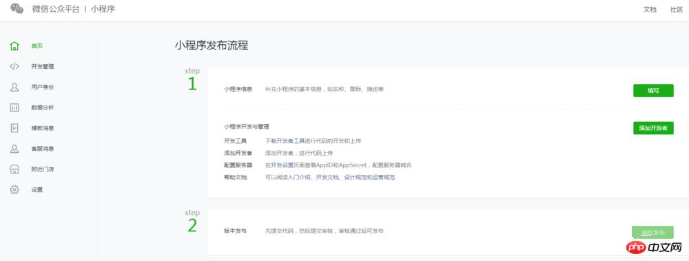 完成以上5步,就已经成功完成了小程序的申请,之后就可以进行开发调试了,小程序后台功能如下截图展示
