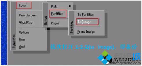 3、选在弹出的界面中选择“手动执行Ghost“选项; 4、进入如下Ghost程序界面:依次选择“Local(本地)→Partition(分区)→To Image(生成映像文件)”项;