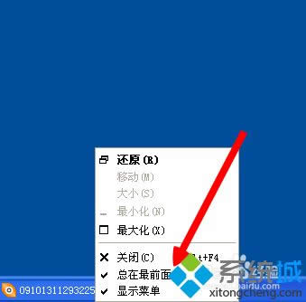 4、我们在任务栏里面找到这个图片,然后我们右键,点击设置为总是显示最前面;